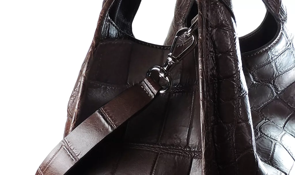 No cleaning product should be used on this type of superior quality leather. To clean the bag, always use a damp cloth, and then leave it to dry. The bag can also be cleaned with a damp cloth. If it is absolutely essential to use a product to clean the item, use products with a low lanolin content, or else specific products for exotic leather.