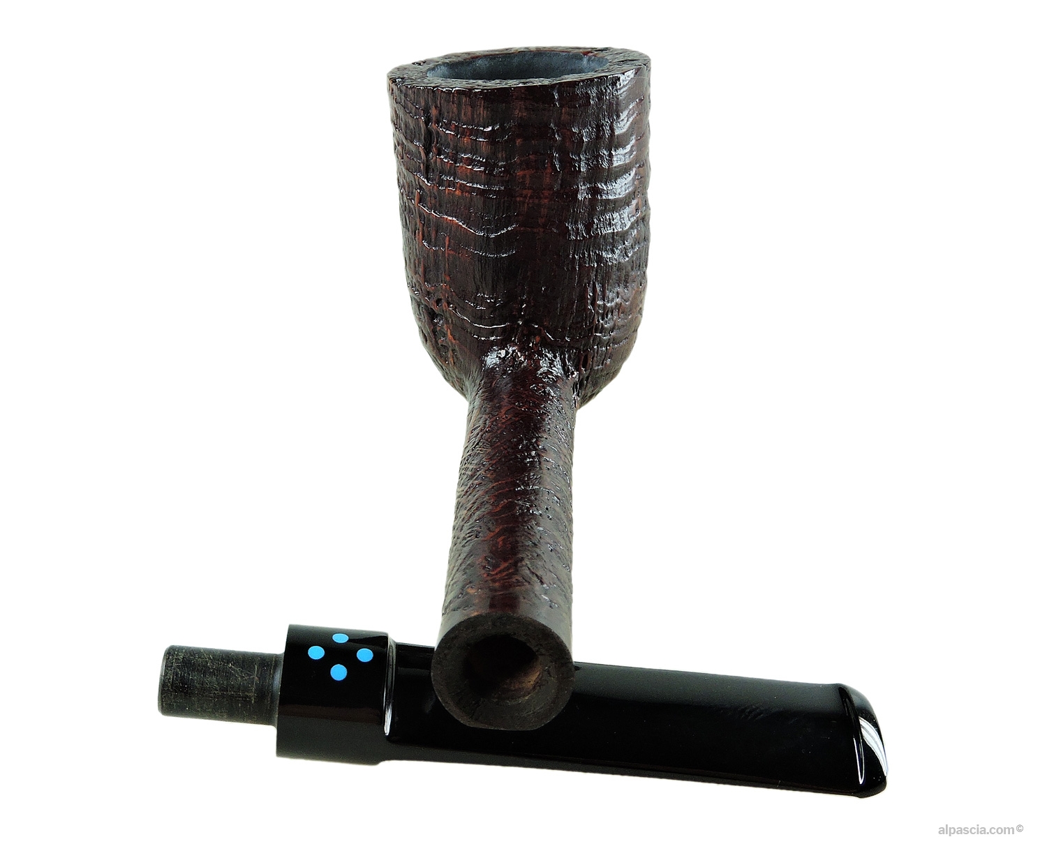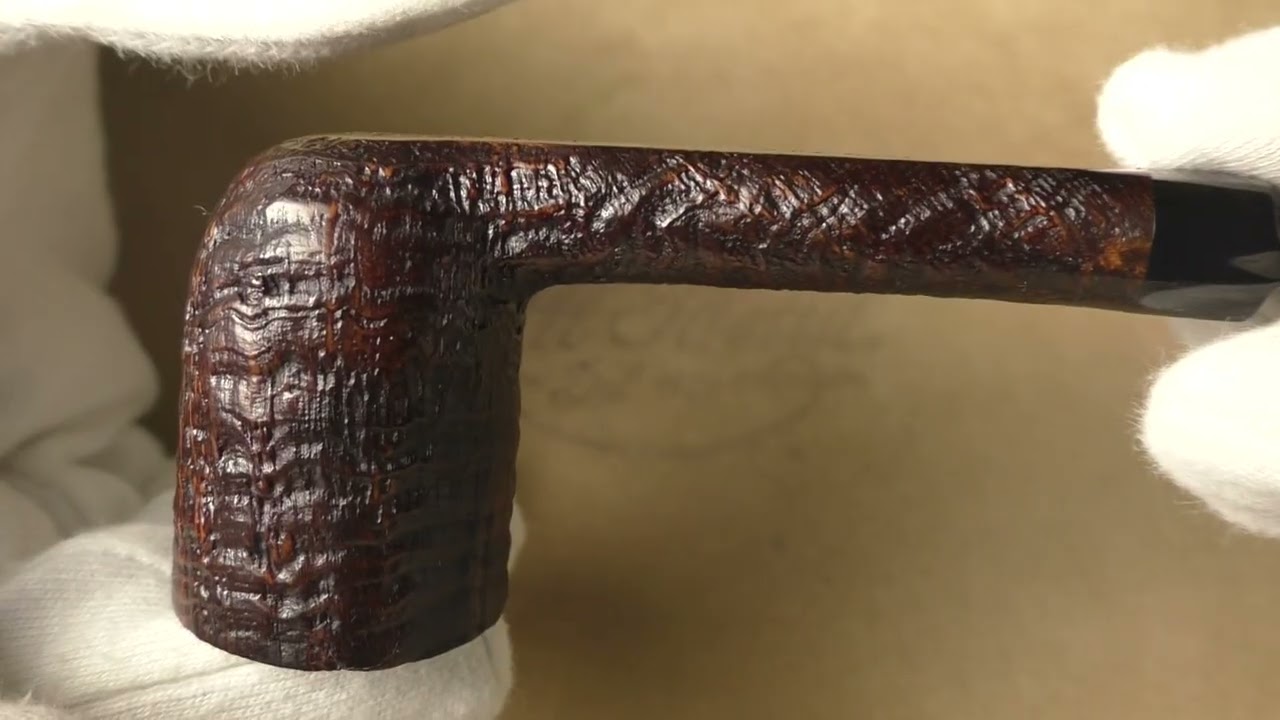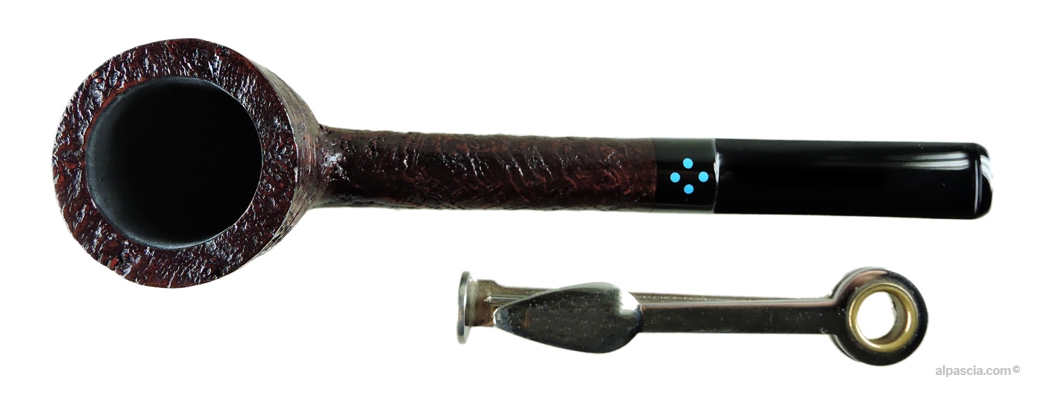 Sasieni 4 Dot Ruff Root Dark, brown sandblasted lovat. Sasieni pipe holder included in the price.
