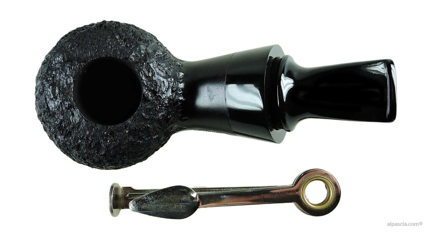 This pipe is a reverse calabash in compact dimensions, made from Erica arborea briar (even the colored versions are made of briar). Despite its reduced length, the bowl is generous and allows for longer smoking sessions. When removing the mouthpiece, you’ll notice that the shank is hollow, which is the essence of the reverse calabash system. This expansion chamber allows the smoke to expand, reducing heat and depositing moisture, ensuring fresh and dry smokes even in a pipe of modest size.
