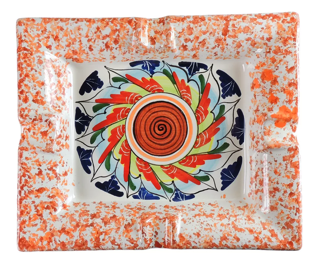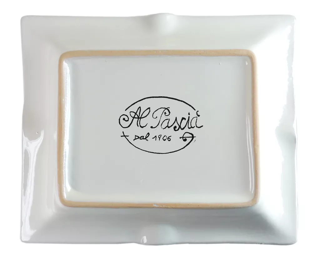 Nota: questo posacenere è dipinto a mano e ci si può aspettare qualche ragionevole variazione tra l'esempio che abbiamo fotografato e quello che riceverete.