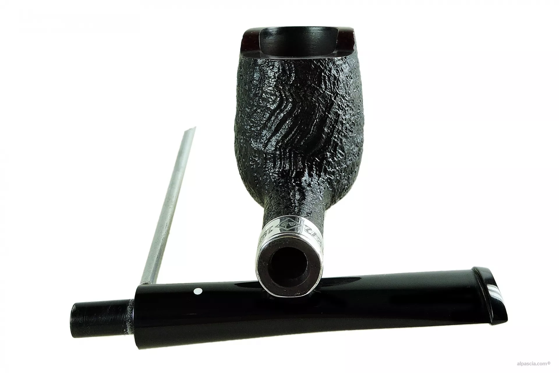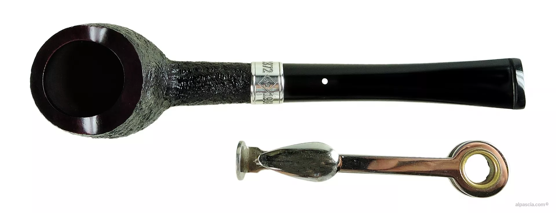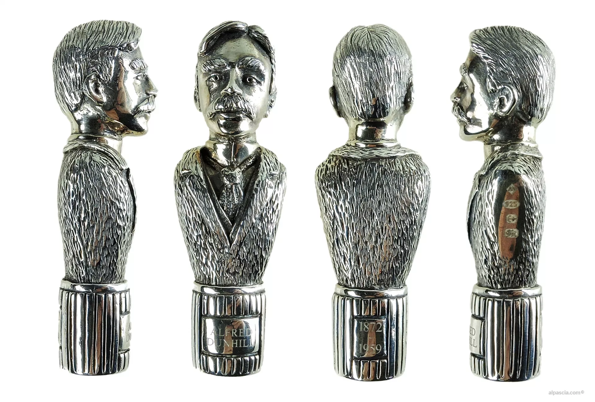 Ogni pipa è accompagnata da un bellissimo curapipe in argento massiccio che riproduce con grande dettaglio il busto di Alfred Dunhill.