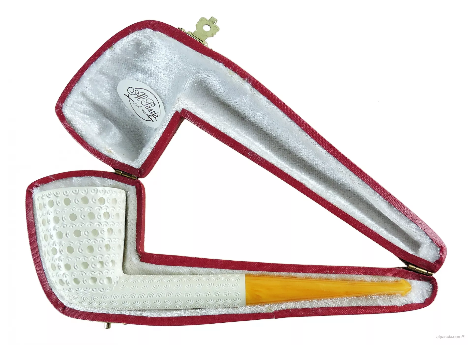 Questa pipa è realizzata a mano utilizzando schiuma da blocco della migliore qualità ed è accompagnata dalla sua custodia di protezione.