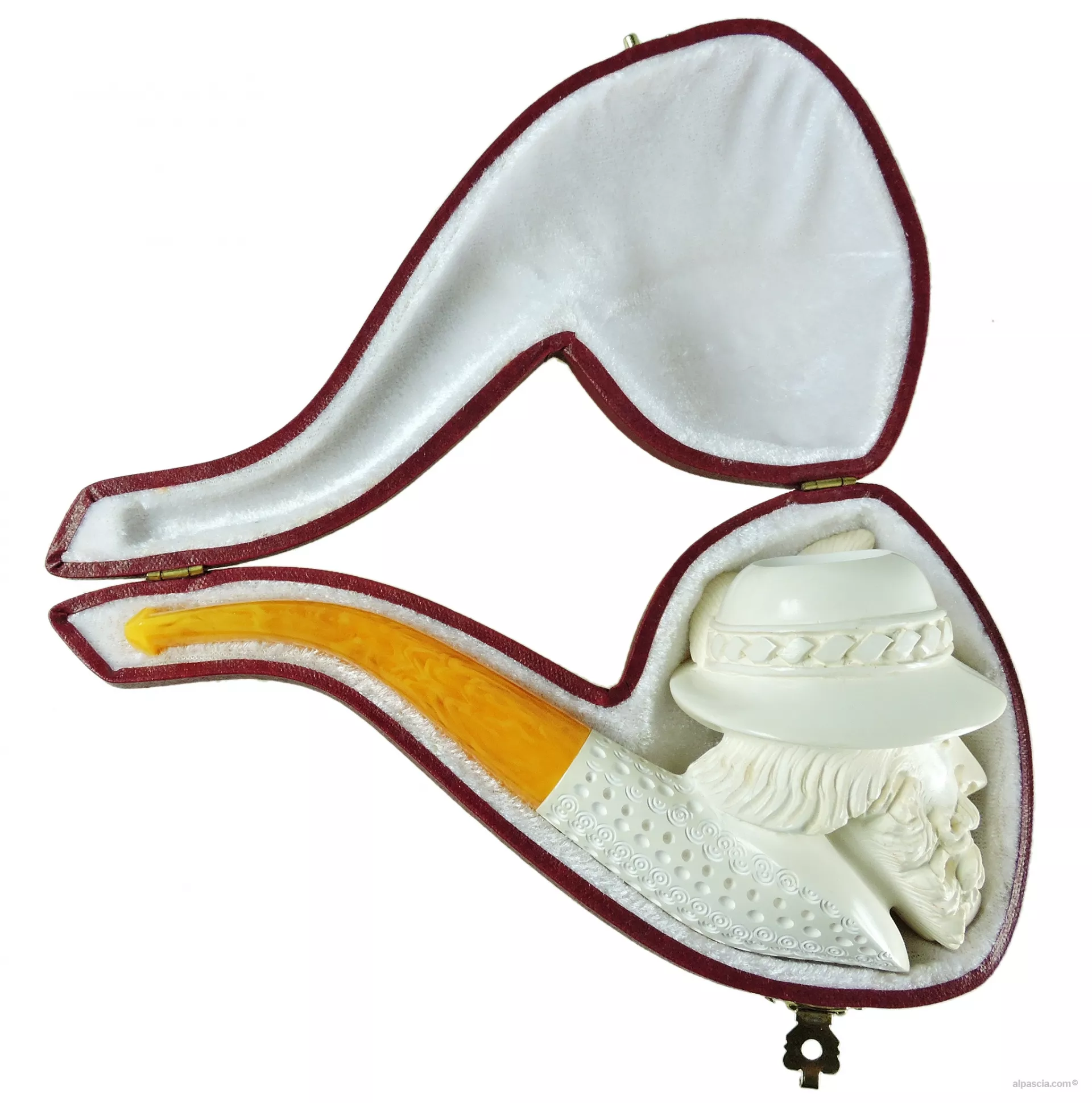 Questa pipa è realizzata a mano utilizzando schiuma da blocco della migliore qualità ed è accompagnata dalla sua custodia di protezione.