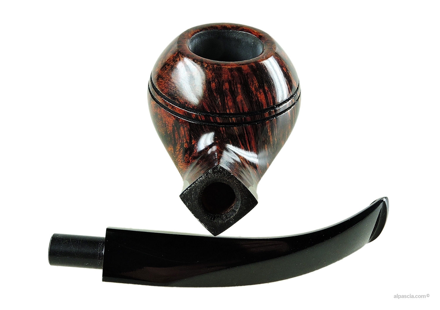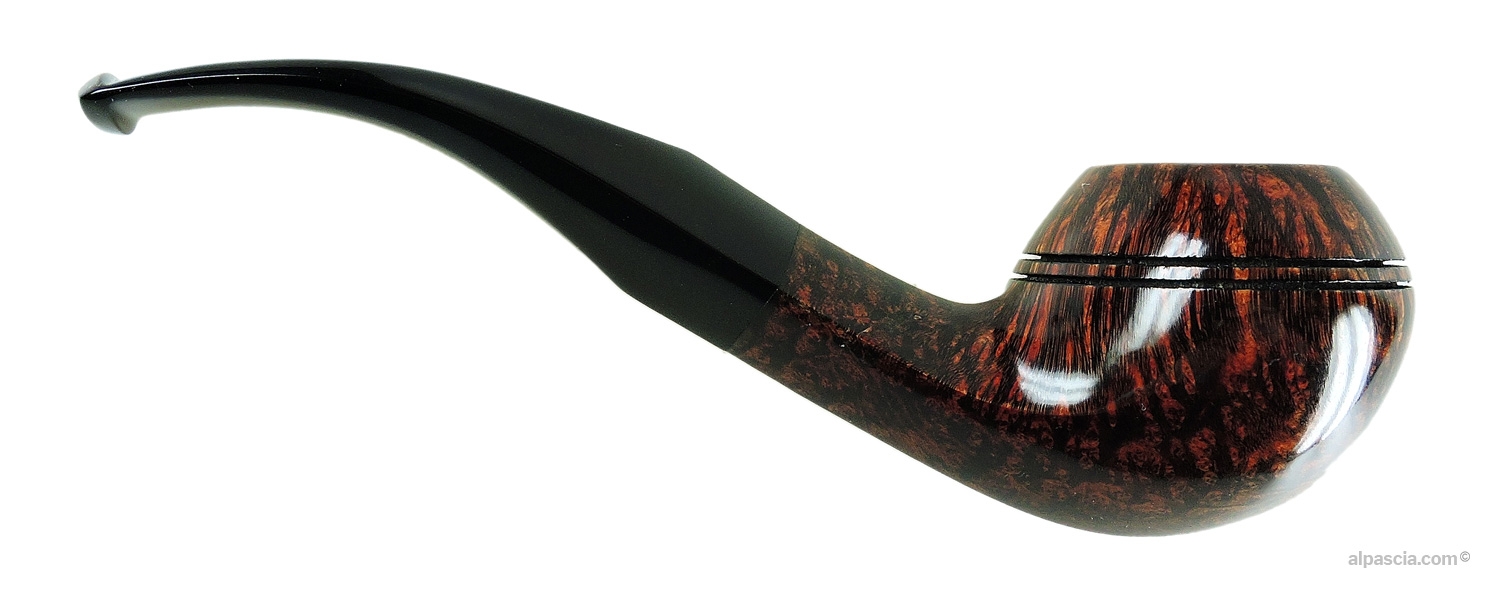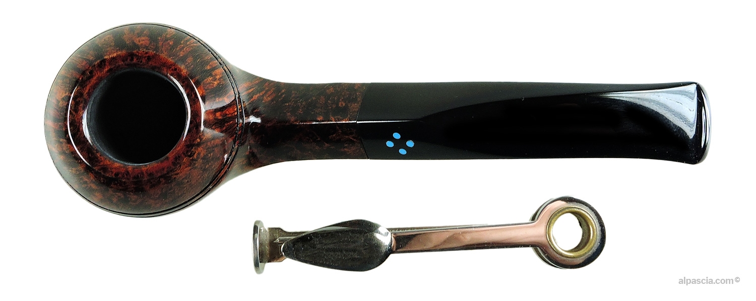 Sasieni 4 Dot Walnut, rhodesian curva liscia di colore marrone. Portapipa Sasieni incluso nel prezzo.