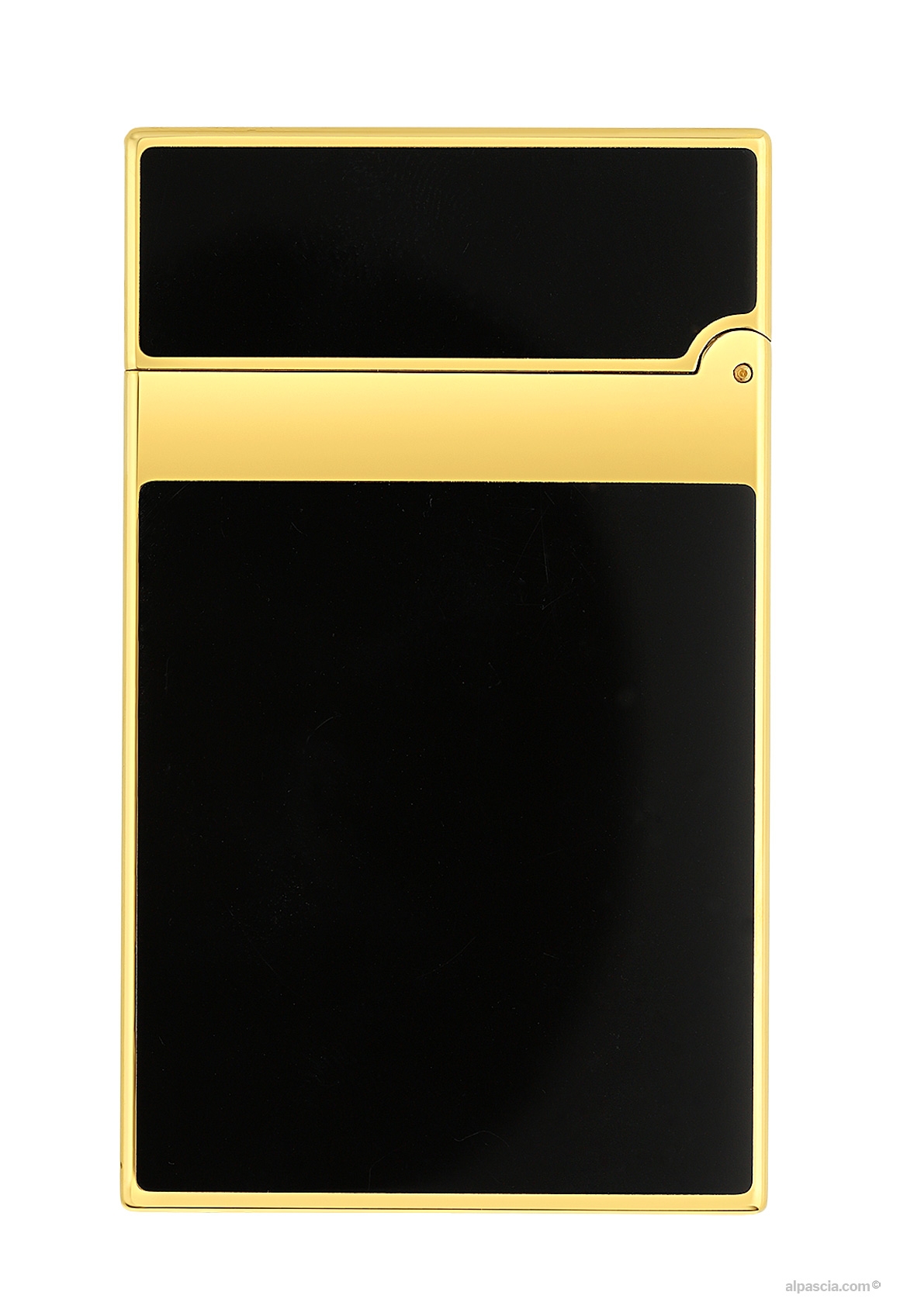 Accendino Ligne 2 Vestito di lacca nera e placcato in oro giallo.