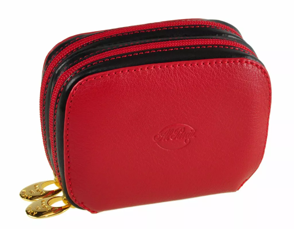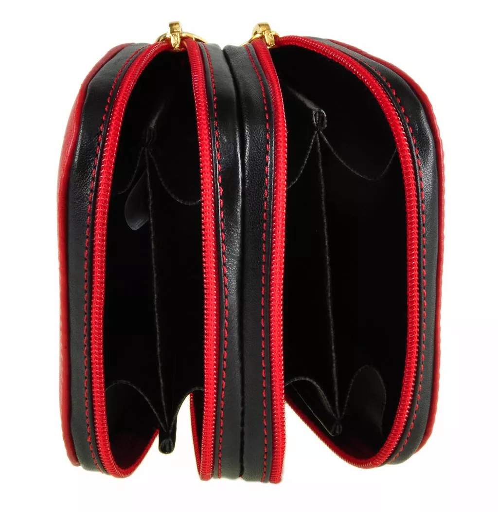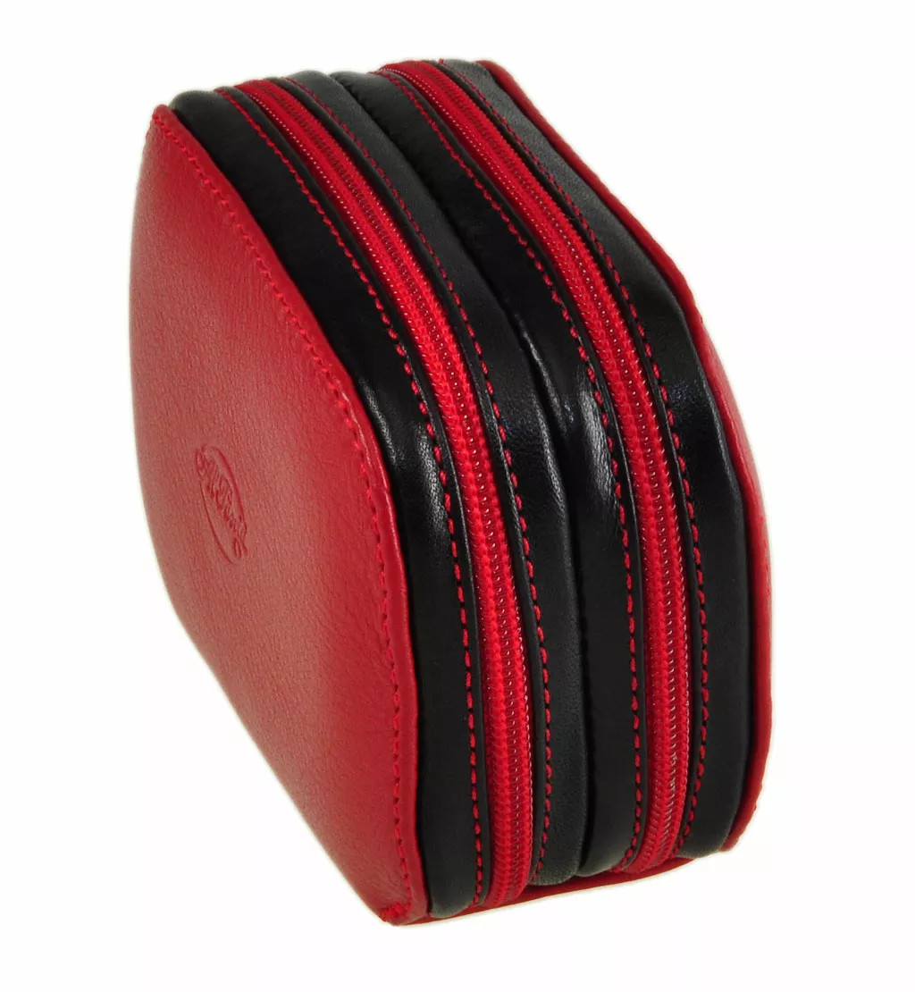 Lavorato artigianalmente in Italia Materiale: pelle (vitello) Bicolore: rosso/nero Portamonete quattro scomparti con due chiusure zip separate Spedizione gratuita in tutta Italia con posta raccomandata